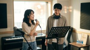 たとえば、「カラオケでこの曲を歌えるようになりたい」という明確な目標があれば、その曲を使って音程・リズム・表現を学ぶレッスンが組めます。